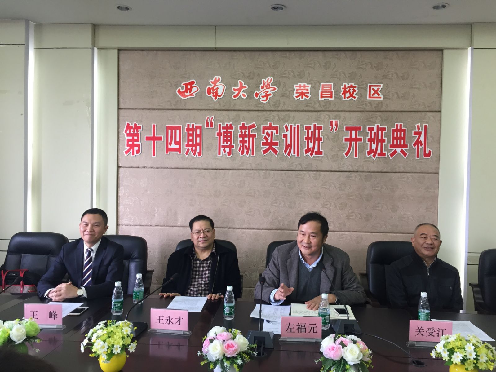 2017年10月27日,思來總經(jīng)理王峰先生受邀出席西南大學(xué)榮昌校區(qū)第十四期“博新實訓(xùn)班”開學(xué)典禮,并作為特邀嘉賓在典禮上致辭。